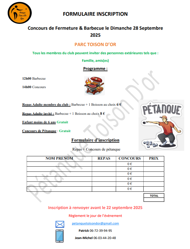 Nous vous attendons pour notre concours de fermeture le Dimanche 28 septembre 2025 au Parc de la Toison D'or.